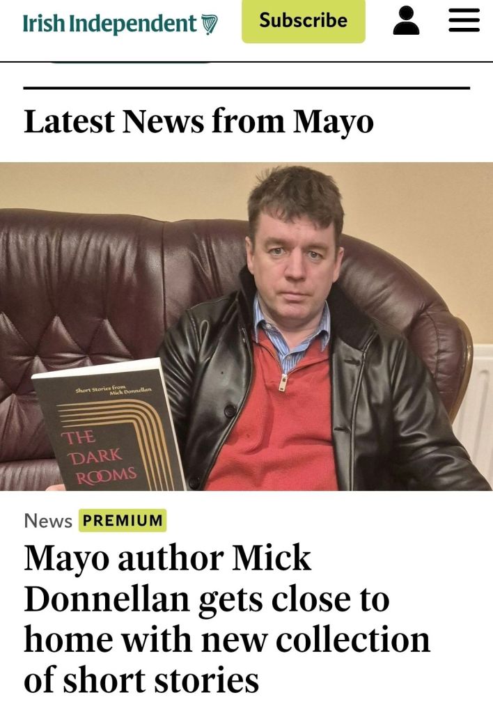 The Dark Rooms is a powerful collection of short stories set mainly in Ballinrobe. Written in Mick Donnellan’s signature voice, sharp, poetic and rooted in the West of Ireland, these stories capture the essence of ordinary lives caught between hope and heartbreak.